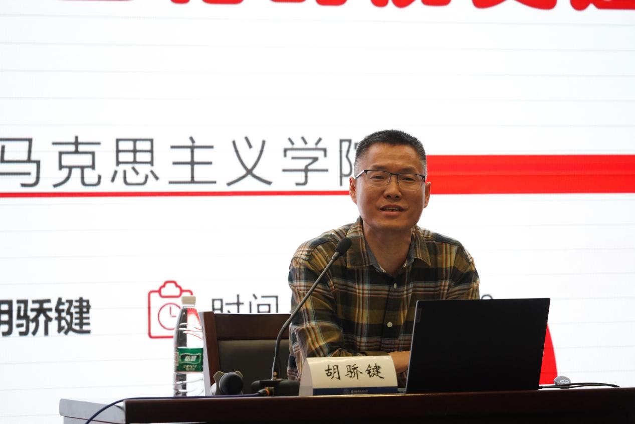 胡骄键以《马克思主义中国化的历史进程》为题,从中国人选择马克思主义的思想史背景、革命和建设时期的马克思主义中国化及其主要任务、马克思主义与中华优秀传统文化的结合三个方面出发,联系历史事件,为学员们进行讲解,引导学员们深入学习马克思主义中国化的历史进程,对中国共产党实事求是地将马克思主义基本原理同中国革命、建设的具体实际以及中华优秀传统文化的结合提出了深刻的见解和学习指导。他希望,同学们能够学习用发展的马克思主义观察时代、把握时代,厚植家国情怀,涵养进取品格,勤奋努力,锐意进取,以实际行动早日加入中国共产党。