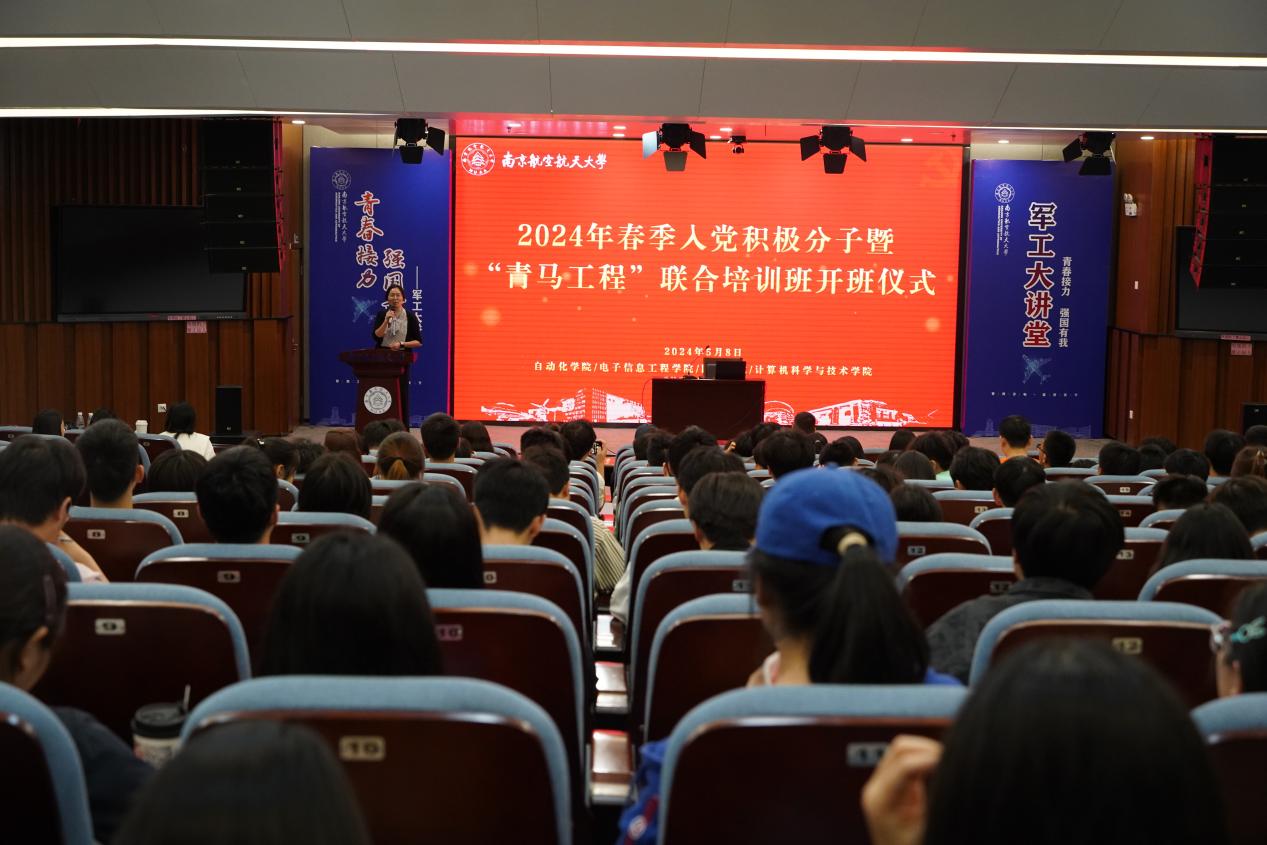 5月8日,由自动化学院、电子信息工程学院、民航学院、计算机科学与技术学院联合举办的2024年春季入党积极分子暨“青马工程”联合培训班开班仪式同步在将军路校区及天目湖校区进行。来自4个学院近690名入党积极分子参加活动,两校区开班仪式分别由民航学院党委副书记王艳及组织员贺彩主持。