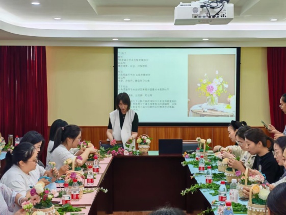 荼蘼留不住残春,而洒满春光的心情值得描纪。为丰富医院职工的业余文化生活,提升审美能力和艺术修养,同时疏解医疗战线的工作压力,增加医院的团队凝聚力,营造团结向上的氛围,5月10日,在母亲节、国际护士节“双节”来临之际,校医院部门工会精心组织了一场以“妙手生花、慢享时光”为主题的插花体验活动,医院近40名职工参加了活动,活动由医院部门工会宣传委员李宇护士长主持。