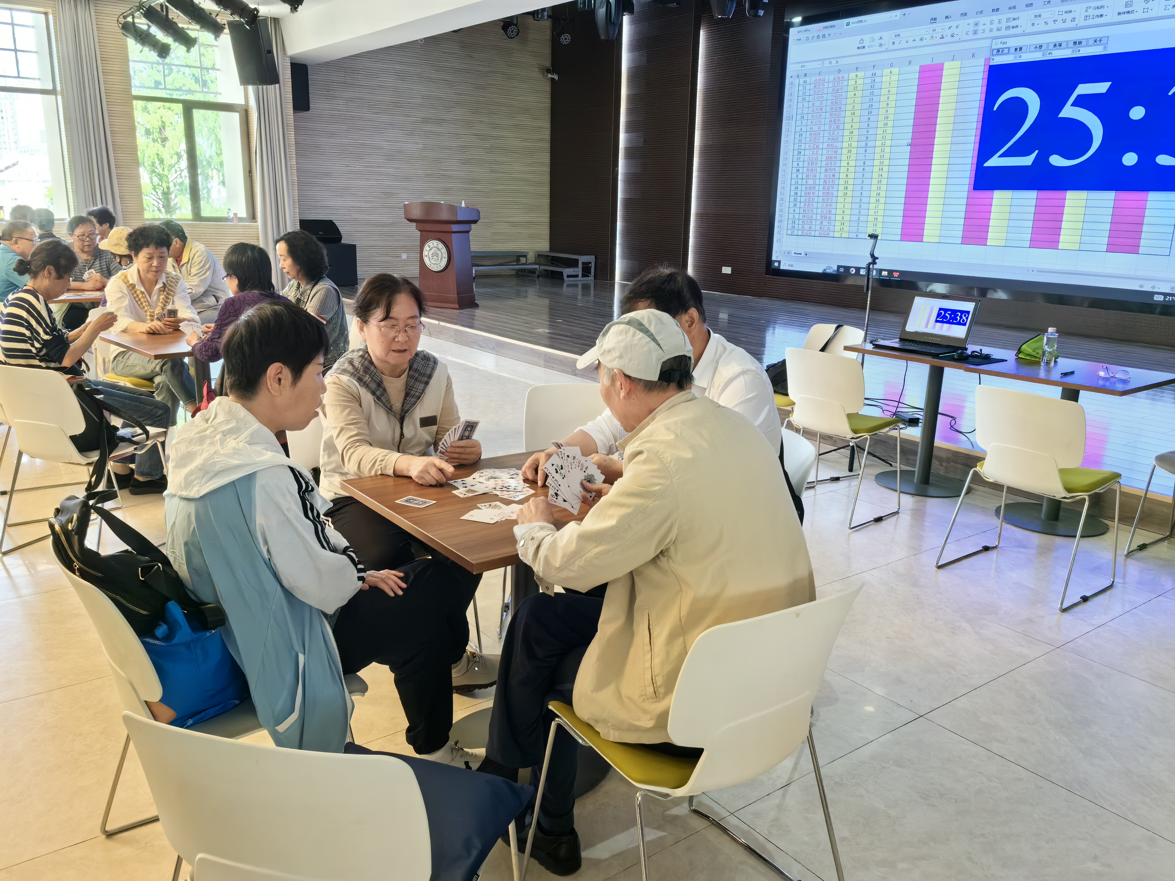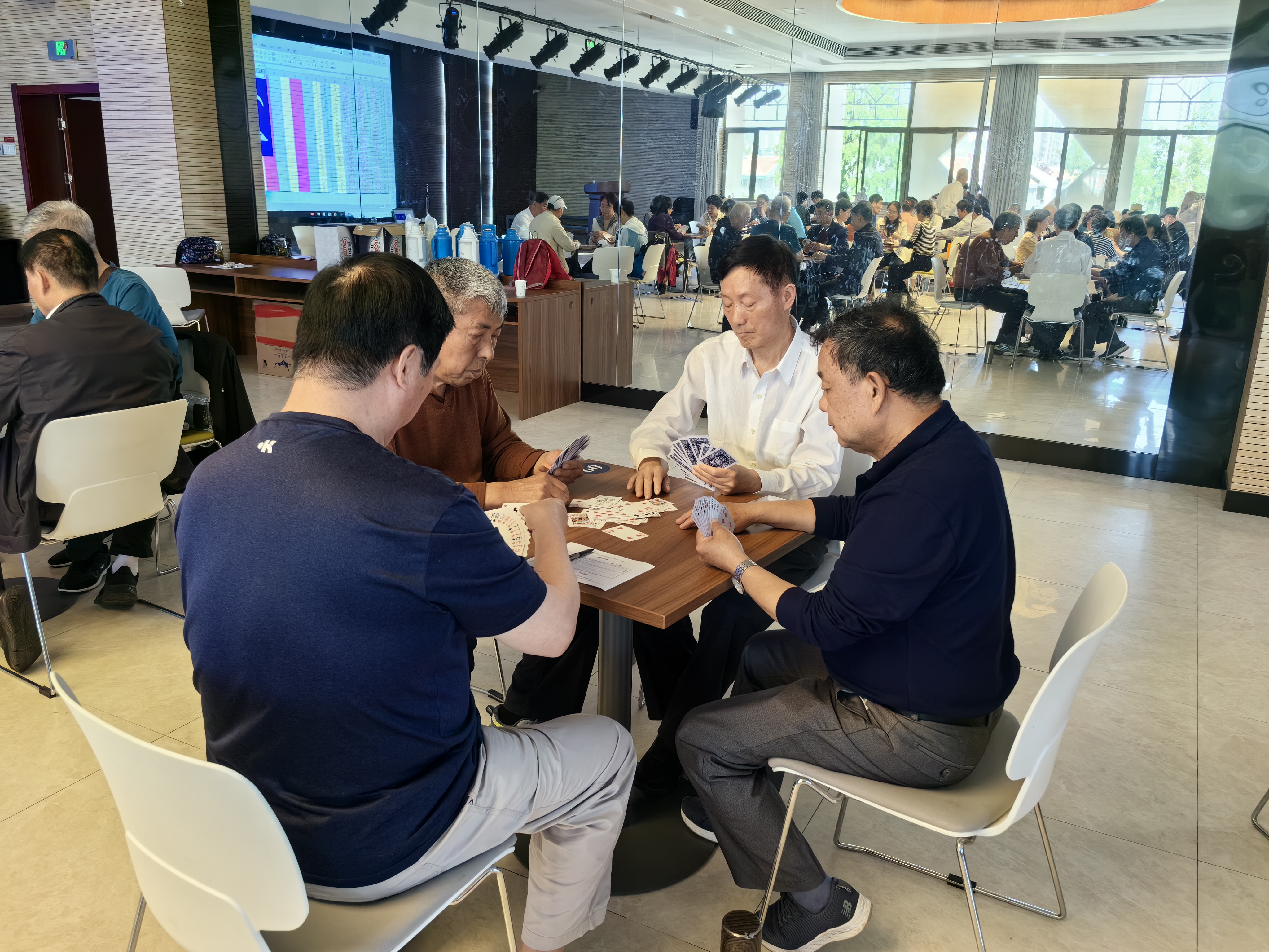 本次活动得到了离退休教职工的积极响应,有近80名老同志踊跃报名,参加人数再创新高。活动采用了在宁高校老年人掼蛋比赛的简易规则,计分过程和对阵编排更为简捷、高效,由双人组队,每轮限时45分钟,共进行5轮角逐。整个活动交流过程充满了欢声笑语,现场气氛轻松活跃,大家享受着掼蛋带来的乐趣。经过一天五轮的角逐,最终决出了一等奖江薇芬、梁云、洪爱民、严鸿钦;二等奖郭步兵、沈辉、丁北景、汪守丽;三等奖李兆京、杨志香、刘宁、顾蓉芬。