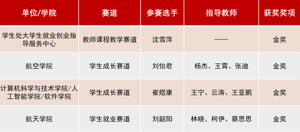 总决赛中,我校沈雪萍老师聚焦国防人才培养、提升学生胜任能力和职业使命感等关键问题,系统阐释了我校职规课程课“一箭多星、分级入轨”的课程模式和以职业使命感为核心的课程特色,获得了在场评委的一致认可,最终以全场最高分荣获赛道第一名。学生赛道中,我校3名参赛选手全力以赴、不惧挑战,全程展现了南航学子敢闯会创、砥砺奋进的精神风貌。