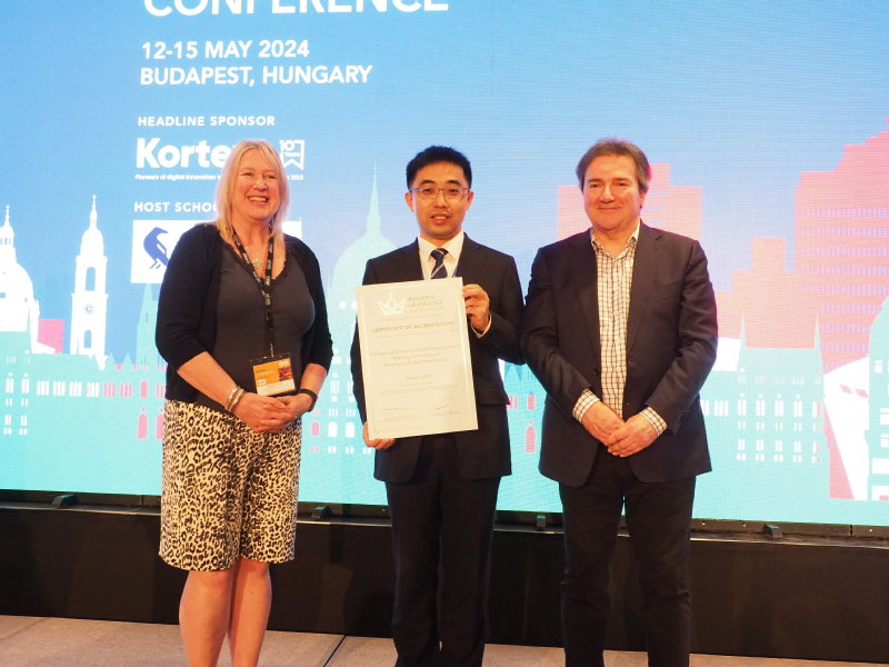 会议期间,AMBA & BGA对获得认证的商学院举行了授证仪式。AMBA & BGA首席执行官Andrew Main Wilson和主席Wendy Loretto为南京航空航天大学经济与管理学院颁发BGA认证证书,王群伟代表学院接受了证书和官方祝贺。