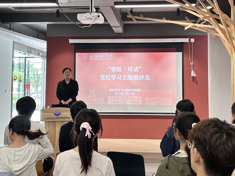 为进一步深入贯彻落实习近平总书记关于党纪学习教育的重要讲话和指示批示精神,落实我校党纪学习教育工作部署会精神,5月17日下午,百名学生书记校长领航团在一站式学生教育服务中心开展了“领航·对话”微沙龙之党纪学习教育,活动邀请到校纪委办夏冰老师与学生开展交流。