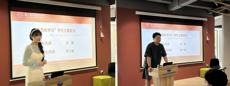 随后,马克思主义学院研究生、百名学生书记校长领航团宣传委员苏雅与材料学院本科毕业生代表张子健分别以“学以致用,担当使命”和“廉洁守正,行稳致远,扣好职场第一粒扣子”进行主题发言,以在校生和准职场人的身份讲述了如何学习贯彻新版《中国共产党纪律处分条例》。