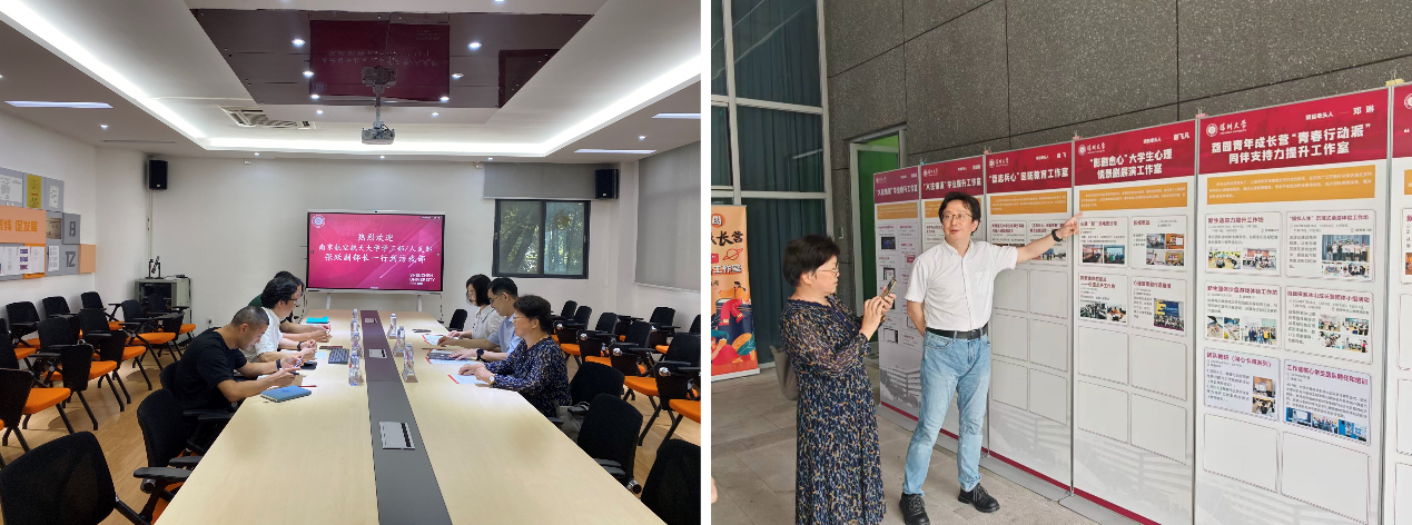 21日,调研人员访问了深圳大学,学校学生工作部部长陈云飞、副部长徐诚革和相关工作人员参与了交流。座谈会上,陈云飞系统介绍了深圳大学在思想引领、心理健康教育、学业支持等方面的做法。调研人员一行还实地参观了学校的学生事务服务中心、一站式学生社区和心理健康教育中心,学校在学生管理和服务方面的先进探索和丰富经验让调研人员受益匪浅。
