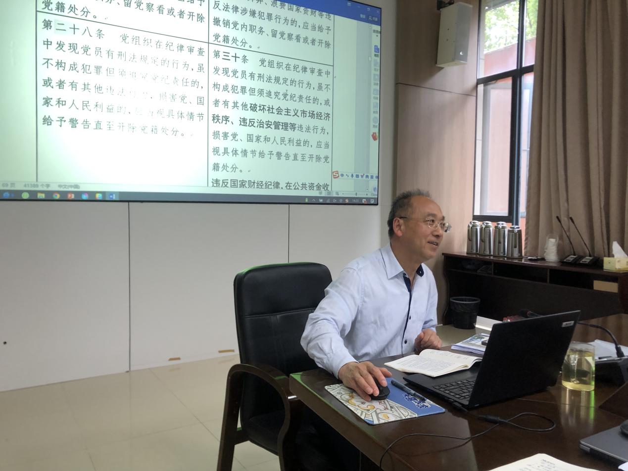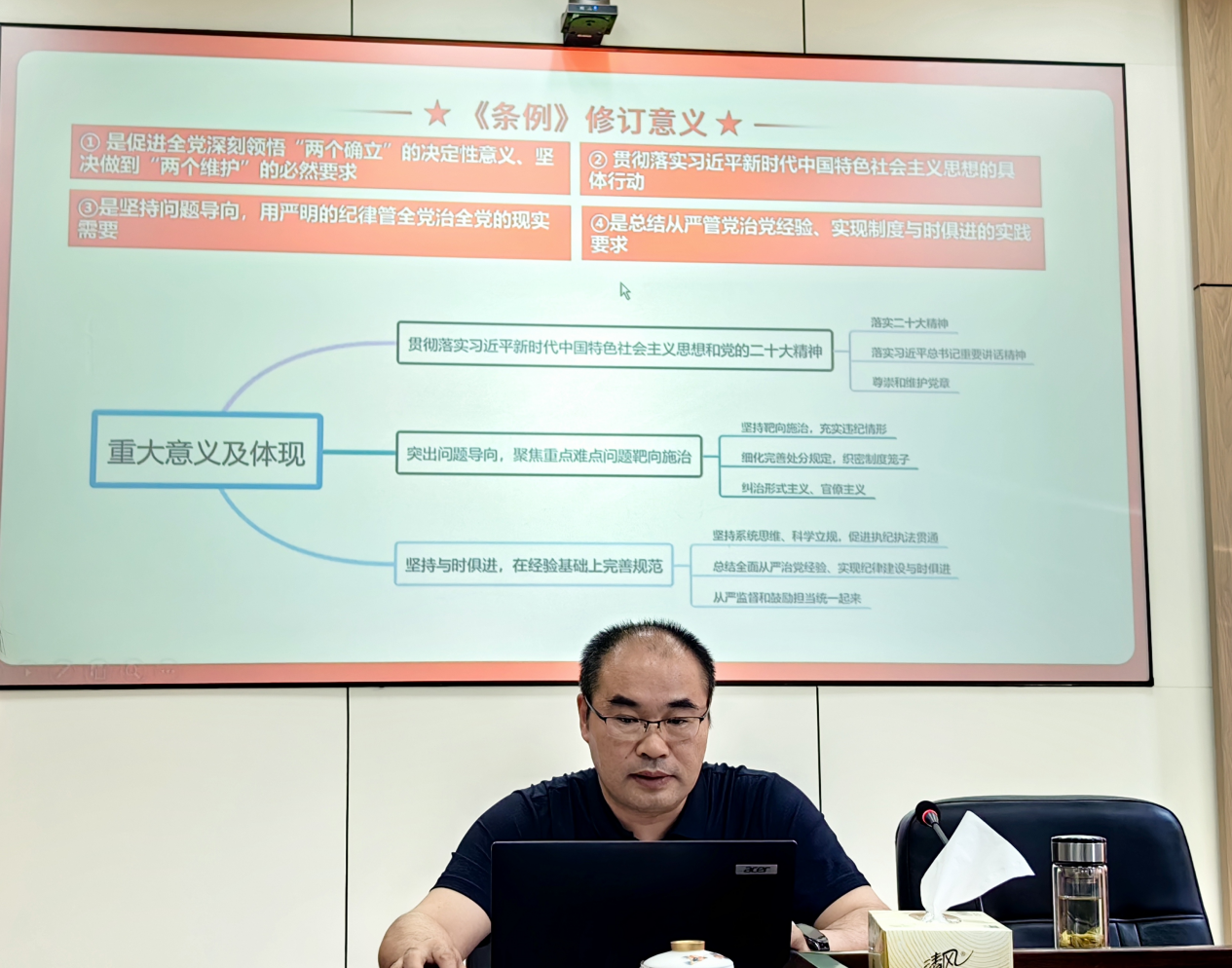 5月11日下午,体育部党总支开展《条例》专题学习,体育部党总支书记袁贵平领学,体育部全体党员参加。会上,袁贵平重点对新旧《条例》进行了对比领学,带领与会同志逐章逐条学习了《条例》修订条款,并针对高校特色结合案例对重要条款进行了详细解读,做到学懂弄通、吃透精神,进一步筑牢思想防线。他表示,党员干部和广大党员应当养成纪律思维,进一步增强法治、纪律、规矩意识,使铁的纪律能真正转化为广大党员的日常习惯和自觉遵循。他要求全体党员要以本次党纪学习为契机,深入学习党的纪律和规矩,切实增强党性修养,努力将理论学习的收获融入到以体育人的实践中来,为推进学校体育事业的发展贡献自己的力量。
