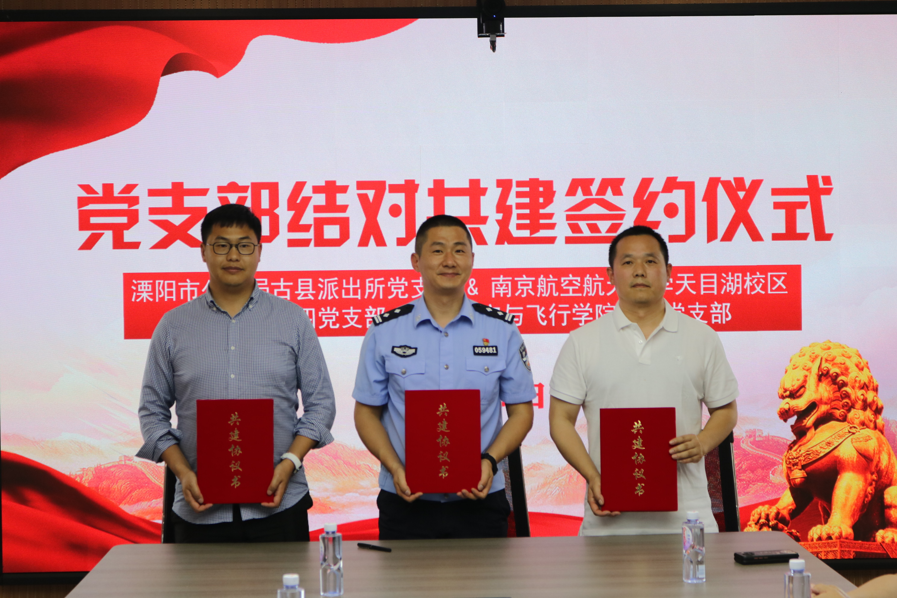 5月22日,天目湖校区党工委第四党支部、通用航空与飞行学院第二党支部与溧阳市公安局古县派出所党支部三方签署党建联建共建协议。签约仪式在溧阳市古县派出所举行,溧阳市公安局党委委员、副局长李晓敏,天目湖校区党工委书记王伟华、通用航空与飞行学院副书记魏慧冬、保卫处副处长魏波等出席活动。
