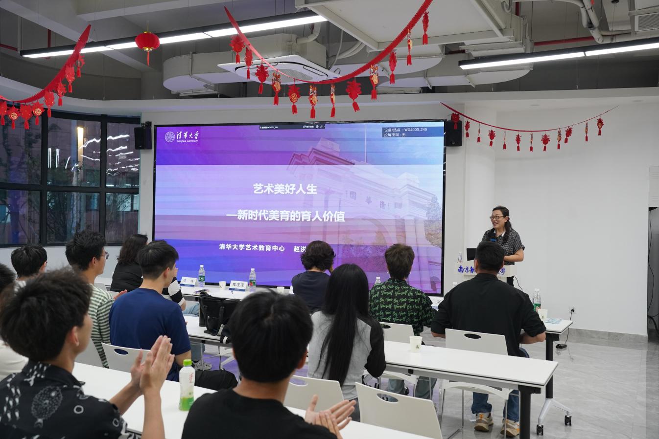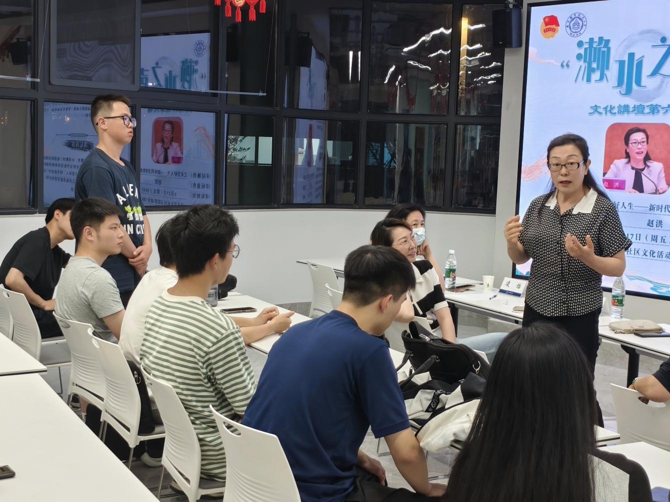 为切实增强天目湖校区师生的美育素养及人文情怀,2024年5月17日,校区团工委邀请了清华大学艺术教育中心主任、教育部首届全国高校美育教学委员会秘书长赵洪研究员,在校区“一站式”学生社区举办第六期濑水之声文化讲坛。学校艺术教育中心主任杨莉莉、副主任路漫漫,校区党工委副书记、学生处副处长贡海俊等部门负责人参加活动。