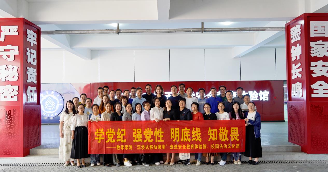 为深入贯彻落实习近平总书记关于党纪学习教育的重要讲话和重要指示精神,引领广大教师干部以德立身、以廉为本,5月22日,数学学院开展“学党纪 强党性 明底线 知敬畏”党纪学习教育“沉浸式移动课堂”,前往将军路校区安全教育体验馆、校园法治文化馆参观学习。学院班子成员、五月政治生日代表、教工党员40余人参加,数学学院党委书记许静带队。