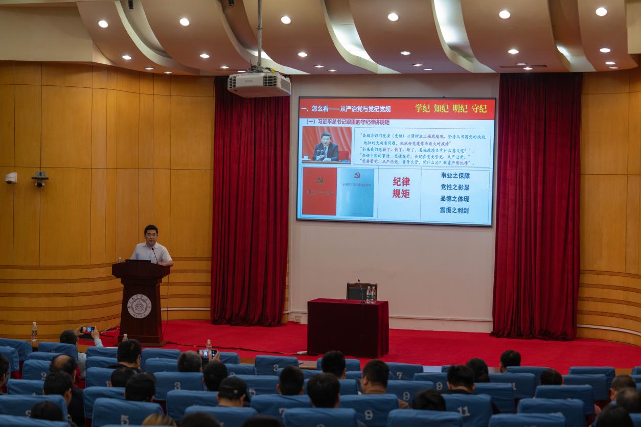 无人机研究院党委书记、长空科技有限公司董事长高小泽以“永葆创业激情,守牢纪律底线”为题讲授纪律专题党课,深入解读《中国共产党纪律处分条例》内涵要义。他表示,《条例》的修订是贯彻落实习近平新时代中国特色社会主义思想和党的二十大精神的必然要求,也是全体党员干部知纪明纪的必修教材和守纪执纪的行为准则,我们要深刻认识党纪学习教育的重大意义,准确把握党纪学习教育的任务要求,切实推动党纪学习教育见行见效。他强调,全体党员要讲党性、守底线、有作为,自觉用纪律这把“戒尺”校正自己的思想和行动,真正将遵规守纪内化于心、外化于行。同时,勉励在场教职员工要坚持党建引领,严守纪律规矩,发扬长空精神,勇于履责担当,为无人机事业改革发展再立新功。