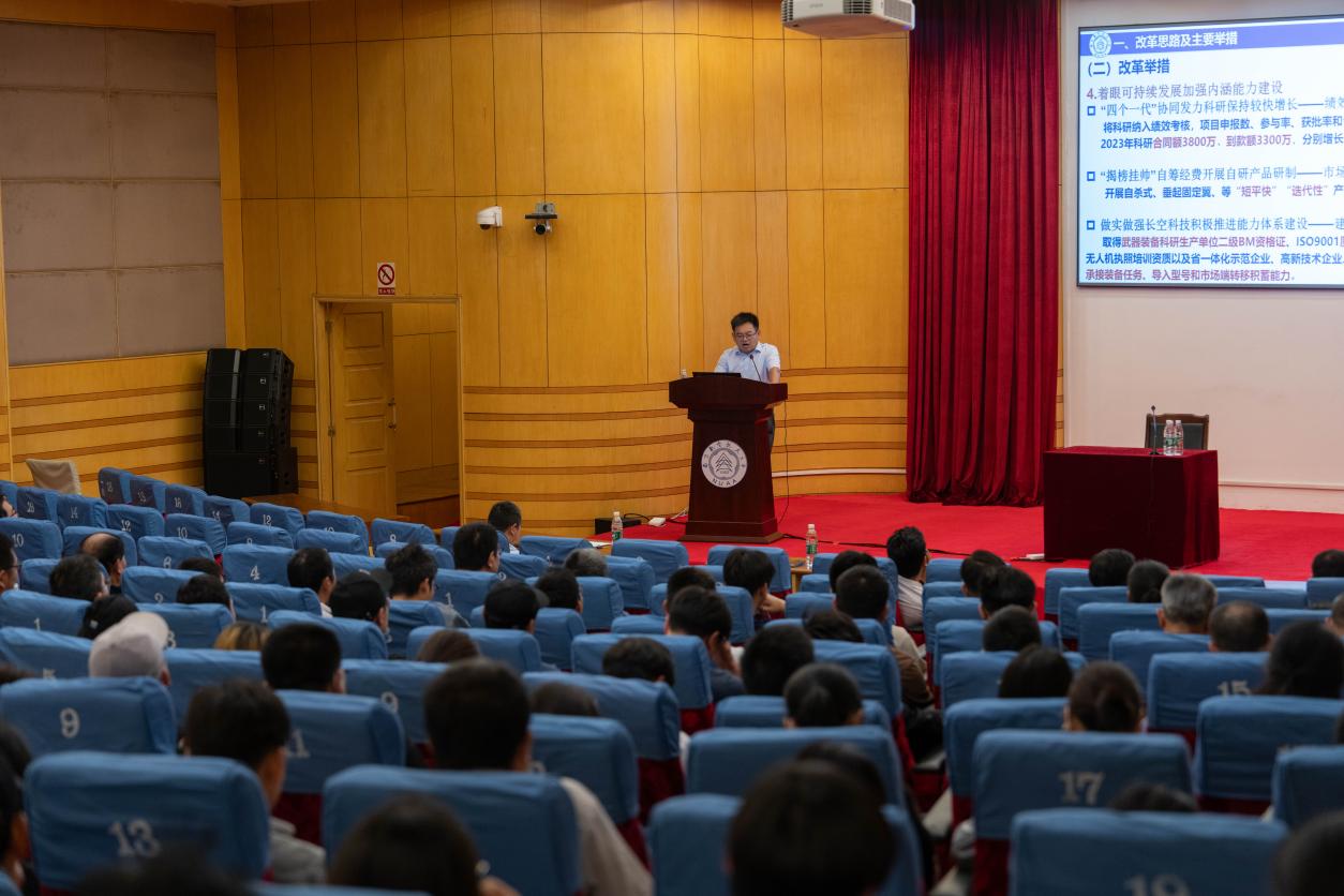为深入学习贯彻习近平总书记关于党纪学习教育的重要讲话和指示精神,落实校党委关于纵深推动无人机事业改革发展和党纪学习教育的相关要求,扎实推动党纪学习教育走深走实,5月17日,无人机研究院/长空科技召开改革发展情况通报会暨党纪学习教育专题党课,无人机研究院/长空科技有限公司全体教职员工参加。会议由院党委副书记、副院长、长空科技常务副总经理杨波主持。