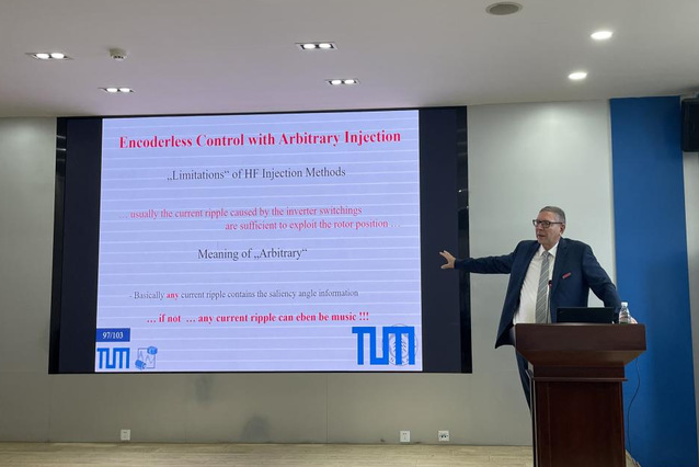 凯内尔表示,对受聘为南航客座教授感到非常荣幸。他曾多次受邀到访南航,并与南航长期保持着紧密的交流合作。他希望尽自己所能持续为南航的发展建设贡献力量。仪式结束后,凯内尔教授为我校师生作学术报告,介绍了交流驱动系统无位置传感器控制理论与方法,详细讲解了采用高频信号注入检测转子位置的方法。与会师生围绕报告主题踊跃提问,会议现场气氛热烈。
