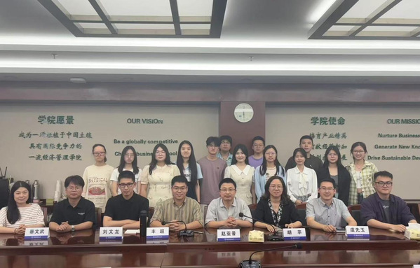 作为此次会议的召集人,丰超首先表达了对院、系领导的感谢,尤其是感谢他们在BA学社筹备、建立、运营等工作中的大力支持。接着,他表示,对内,学社应团结一致,充分发挥个人潜能;对外,学社应积极探索,扩大面向对象,主动对接经管导师,掌握更多课题信息,更好地满足同学们的需求。胡宇昕从敢想和敢做两个方面表达了对学社的期待。他表示,经管学子要胆大心细,敢于创新,同时要踏实勤奋,敢于实践,回馈自己,回馈学院。