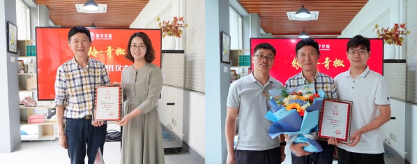 随后,举行数学学院“银龄-青椒”赋能行动结对仪式,党委书记许静为“银龄导师”倪勤颁发了聘书。首次结对的青年教师高益铭和李肖为倪勤献上了拜师鲜花,亦师亦友匠心承,教学相长共进步。