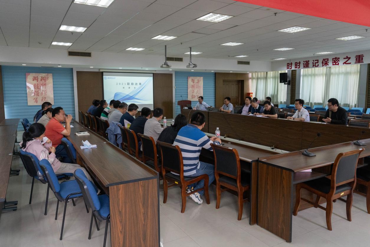 黄国平对学校最新职称评聘文件及相关改革要求等作了政策解读,介绍了今年职称评审工作开展情况。根据科技部、教育部等部门出台的相关文件要求,结合学校实际情况,黄国平围绕职称政策修订过程、指导思路、政策变化、评审类别、申报要求、评审组织等方面,详细系统地阐述了本轮职称尤其型号装备领域职称申报特点和要点。他强调,职称评审作为业务水平的评价,更进一步聚焦强化质量、淡化数量,突出业绩贡献点以及相关代表性成果评价,引导和要求申报人员取得更高质量和更高水平的业务成果以体现自己的专业能力。