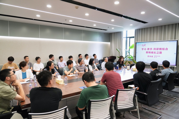 吉洪湖以“学习-教学-科研相结合——教师成长之路”为主题,围绕“大学教师与教学改革”“学习-教学-科研的关系”“如何做好学习、教学改革和科研”三方面展开分享。他从师者如何传道授业的角度引入教学改革的意义,结合自身经历分享学习、教学和科研三者相互促进、相辅相成的经验,提出在课堂学习的同时更要结合实践学习,学习-教学-科研相结合是青年教师成长的有效途径。教学要适应国家人才培养的需求、反映科学技术的发展、与科研相互促进、协同育人,最终更好地培养一流人才、成就卓越教师。