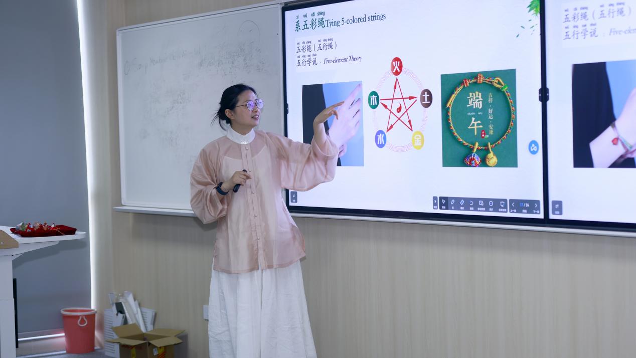 我校汉语中心教师韩雅君给大家带来了一堂生动的中国文化课。她深情讲述了屈原的故事,详细讲解了端午节吃粽子、赛龙舟、挂艾草等习俗。在场的同学们对端午节所蕴含的传统和历史有了更深的了解,感受了中华文化千年传承的精神。