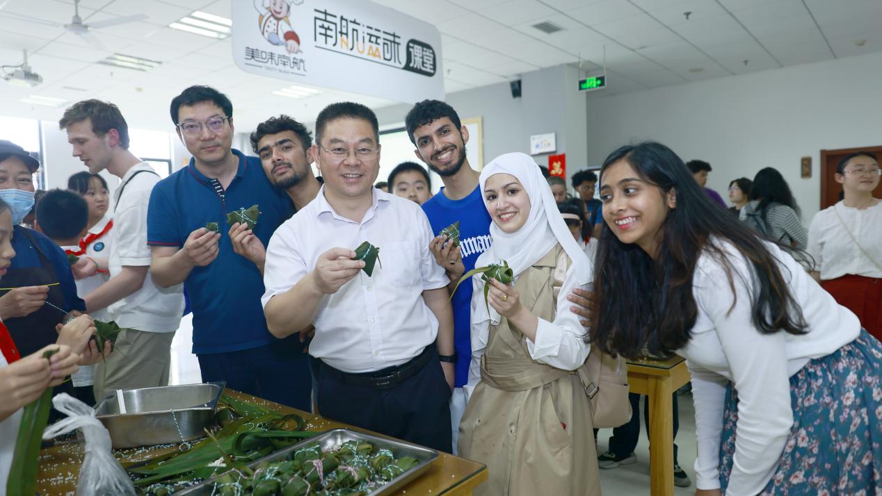 6月7日下午,“中外学子共同体验中国非遗文化—端午节”主题活动在将军路校区举行。国际教育学院院长刘长江、副院长陈峰、李勇,南京市逸仙小学副校长陈凡,德育处主任夏静等出席活动,我校来华留学生及南京市逸仙小学的师生代表欢聚一堂,共同感受传统文化,共度端午佳节。