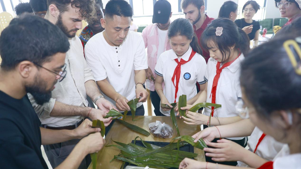 在场的孟加拉国留学生瑞杜说,这是他第一次包粽子,他觉得通过双手的折叠、翻转,能够包出一个有棱有角的粽子很有趣,以后他也想给家人讲述端午节的文化,和他们一起包粽子。逸仙小学的同学们也纷纷表示,和外国大哥哥大姐姐一起学习包粽子太有趣了,既掌握了技能,还练习了英语,下次还要来南航一起包饺子、做元宵。