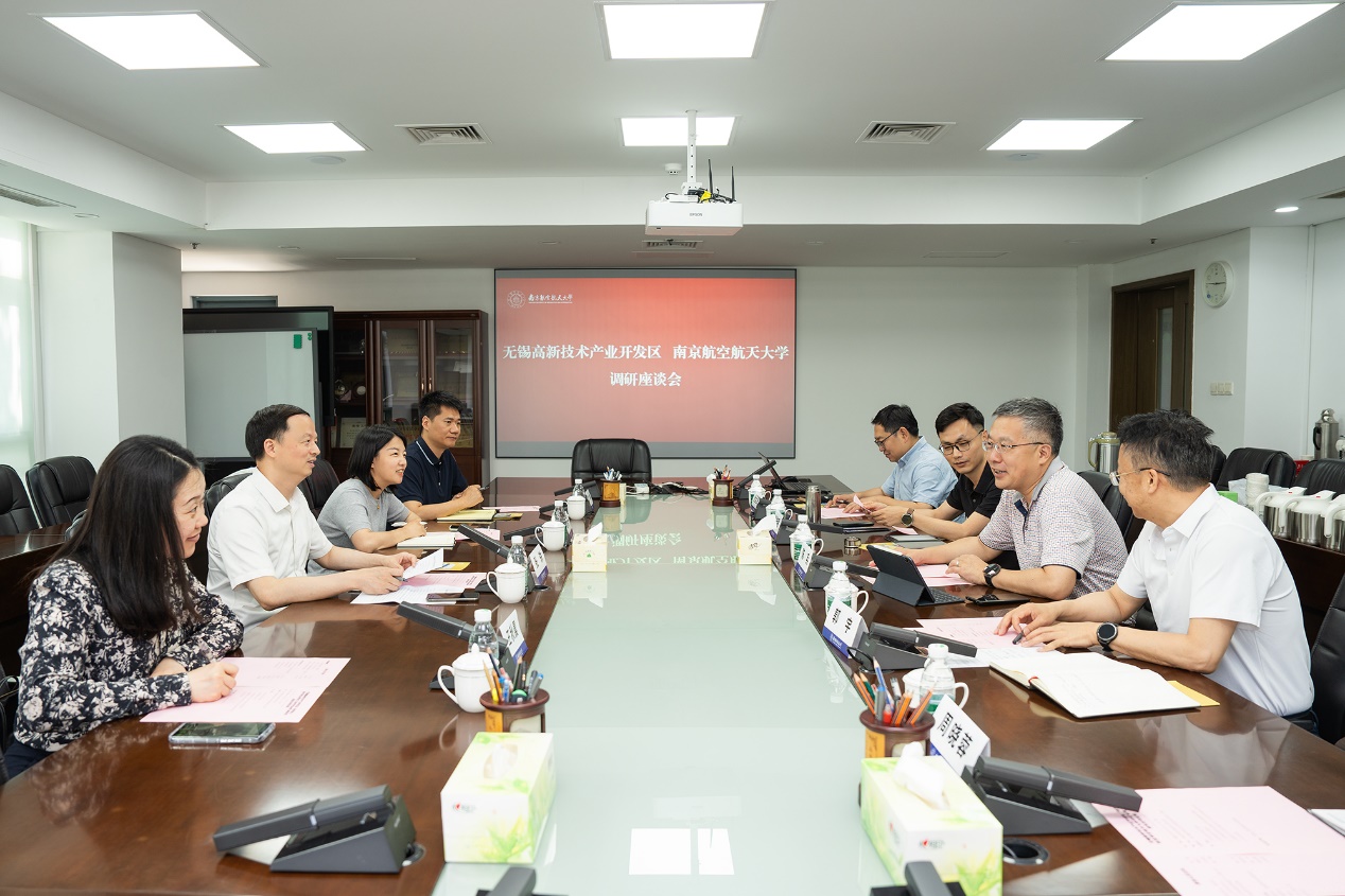 张轶感谢学校的热情接待,在介绍无锡高新区总体情况的基础上,重点介绍了无锡高新区产业人才实训学院情况。希望与南航深度合作,结合卓越工程师培养,通过“招生、教学、实训、就业”四位一体模式,打通产教融合实践路径,为集成电路、物联网、生物医药等战略性新兴产业做好人才储备。