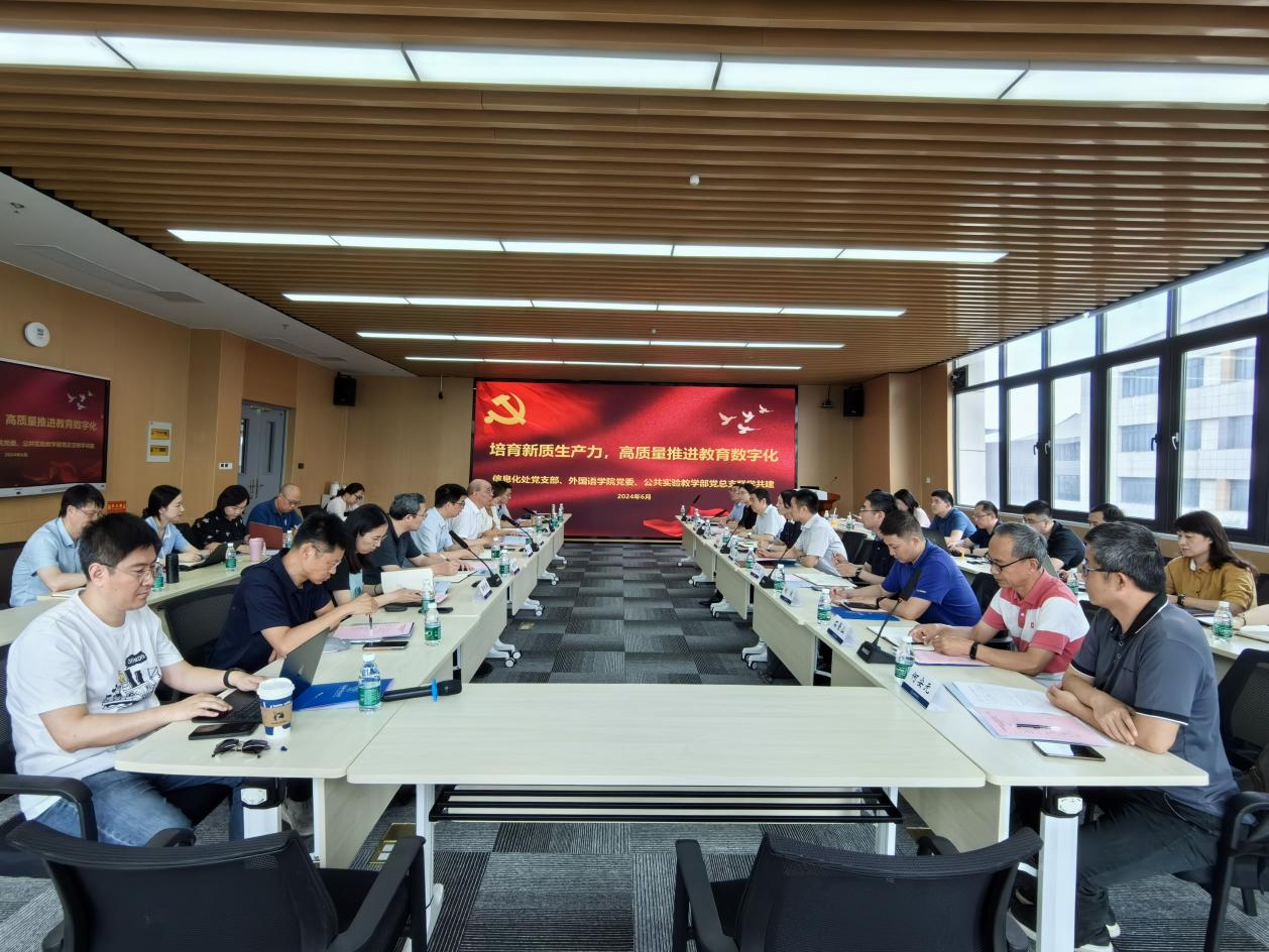 6月12日,信息化处党支部、外国语学院党委、公共实验教学部党总支在天目湖校区围绕“培育新质生产力,高质量推进教育数字化”主题开展联学共建活动。信息化处、外国语学院、公共实验教学部班子成员,所属系部、中心主要负责同志,科级干部及教师代表参加了学习,会议由公共实验教学部党总支书记张庆主持。