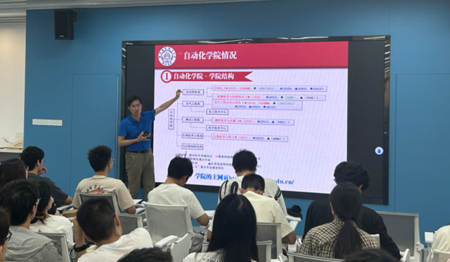 王晓琳向同学们介绍自动化学院的组成架构与各专业情况