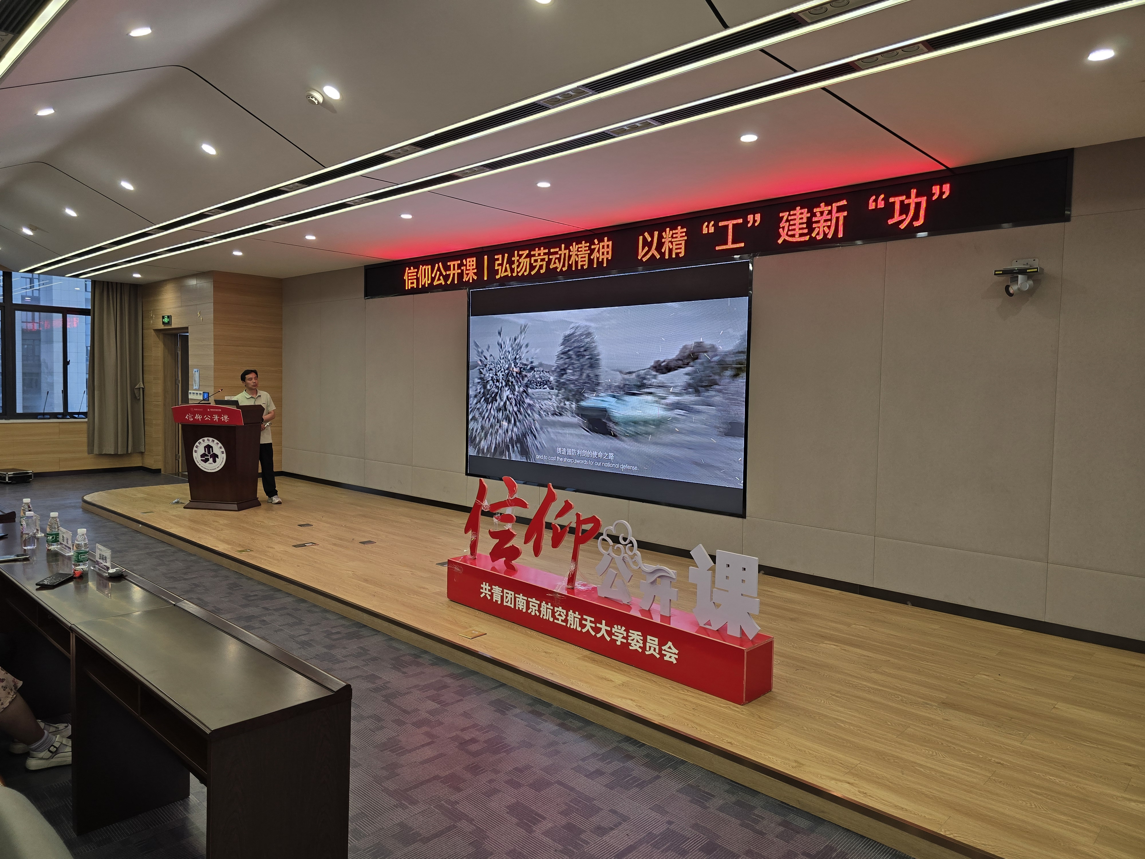 6月15日,由南京航空航天大学团委主办、材料科学与技术学院团委承办的“弘扬劳动精神 以精工建新功”信仰公开课在将军路校区材料学院报告厅举行。本次信仰公开课邀请全国五一劳动奖章获得者、中国兵工首席技师徐树永主讲,北方车辆集团工艺研究院产业化技术室主任肖林林、院党委副书记庄晓舒、副院长郭训忠院团委书记徐萍、材料加工工程系教师及150余名学生现场参与。
