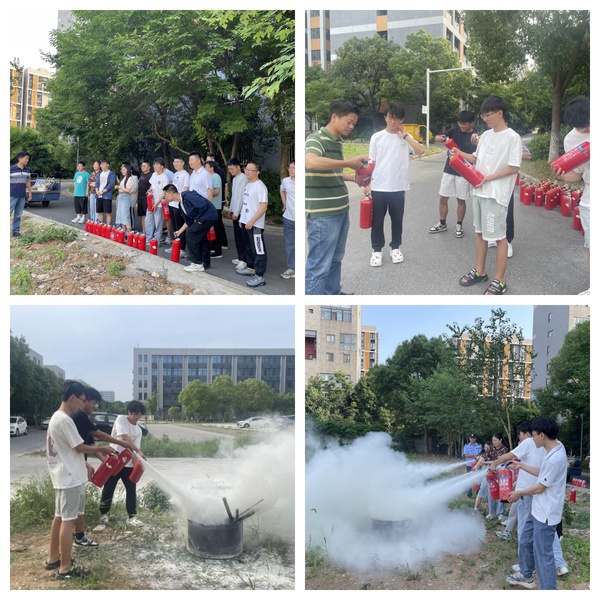 第二部分是实战演练环节,包括灭火器的使用及现场模拟扑灭火源等实战内容。在专业教官的指导下,师生们亲身体验了灭火器的正确使用方法,并进行了模拟火源的扑灭演练,不仅掌握了灭火器的使用技巧,还增强了面对突发火灾时的应急处理能力。