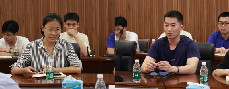 接着,学生党员代表杨昕欣和董沁雨分别发言,从在航天学院四年学习生活的亲身经历出发,从入党的初心、党员的责任与义务、日常中如何发挥党员的模范作用等多个方面展开,同时表达了对党组织和学院的感激之情,发出为中国式现代化挺膺担当的庄重承诺。