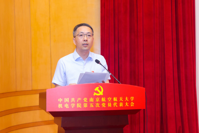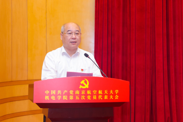 黄志球代表学校党委向大会的召开表示热烈祝贺。他对2018年以来学院党委取得的成绩给予充分肯定。他强调,学院党委要坚持以党的二十大精神和习近平总书记致南航建校70周年重要勉励精神为根本遵循,认真落实学校第十七次党代会决策部署,准确把握“三个”注重战略的内涵和要求,抢抓机遇、乘势而上,不断开创工作新局面,为学校事业高质量发展作出新的更大贡献。同时,他对学院今后的工作提出三点希望:一是把牢政治方向,持续推动学院建设成为坚持党的领导的坚强阵地,全力推动党纪学习教育与学院发展同频共振,将党的全面领导贯穿落实到立德树人的全过程、各方面。二是坚持立德树人,持续推动建设拔尖创新人才主阵地,打造一流本科教育和卓越研究生教育,全面深化教师思政工作和师德师风建设,加快打造高水平师资队伍。三是服务国家战略,持续推动高质量科技和人才供给,大力推进关键核心技术攻关,加快建设高水平人才高地,为加快建设“三航”领域和“两个强国”建设的人才中心和创新高地贡献源源不断的机电力量。
