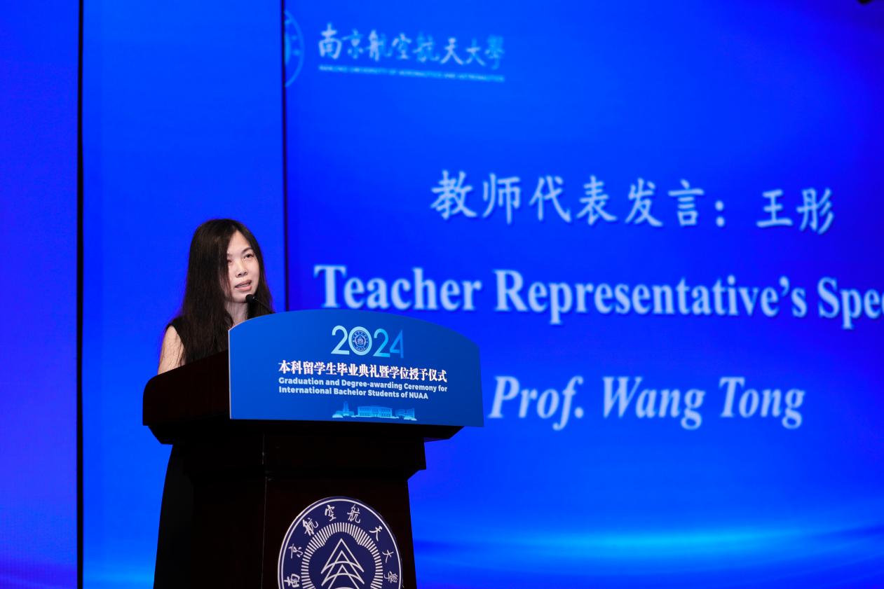 教师代表王彤回忆了与留学生同学在课上课下交流互动的点点滴滴,表达了对他们的美好的祝福和期许,鼓励大家朝着梦想出发,到达理想的彼岸。同时,来自尼泊尔的留学生家长代表Pratap Babu Tiwari先生深情感谢南航对留学生的精心培育,并对全体教职工的辛勤付出表示感激。