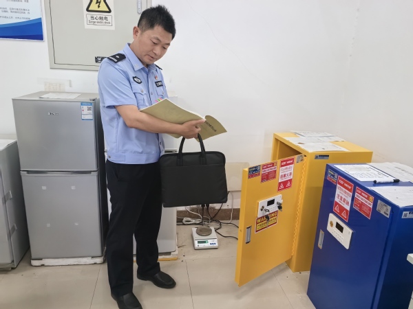 陶晴一行通过实地走访、查阅资料、重点检查等方式,对部分涉及危险化学品的实验室进行现场检查。在检查现场,检查组详细检查了易制爆危化品的购置、存贮、使用、登记等情况,查阅台账和资料,并向师生了解使用管理情况。
