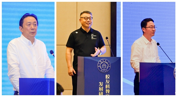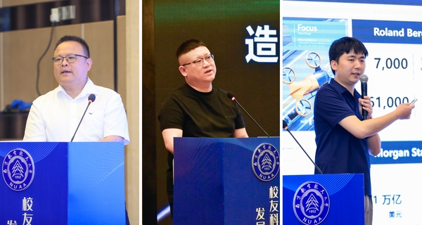 在主题报告环节,三位校友企业家分别作了主旨报告。我校1999级校友、亿维特航空科技有限公司董事长任文广作了题为《做低空经济领航者》的报告,介绍了亿维特创业团队专注于电动垂直起降载人飞行器研发、制造,从初创企业快速成长为江苏低空经济代表企业的创业故事。我校1999级校友、南京硅基智能科技有限公司董事长司马华鹏以《发展新质生产力,创造一亿劳动力》为主题,介绍了以“碳基生命的硅基化”作为愿景,专注于AI技术深度研发和落地应用的事业发展故事。我校2009级校友、沃飞长空科技有限公司产品总监屠强围绕《科技创新,助力低空经济加速腾飞》介绍了沃飞长空以低空出行为核心,为全国低空经济产业链构建与城市立体出行商业生态圈不断创新,快速发展的创业历程。
