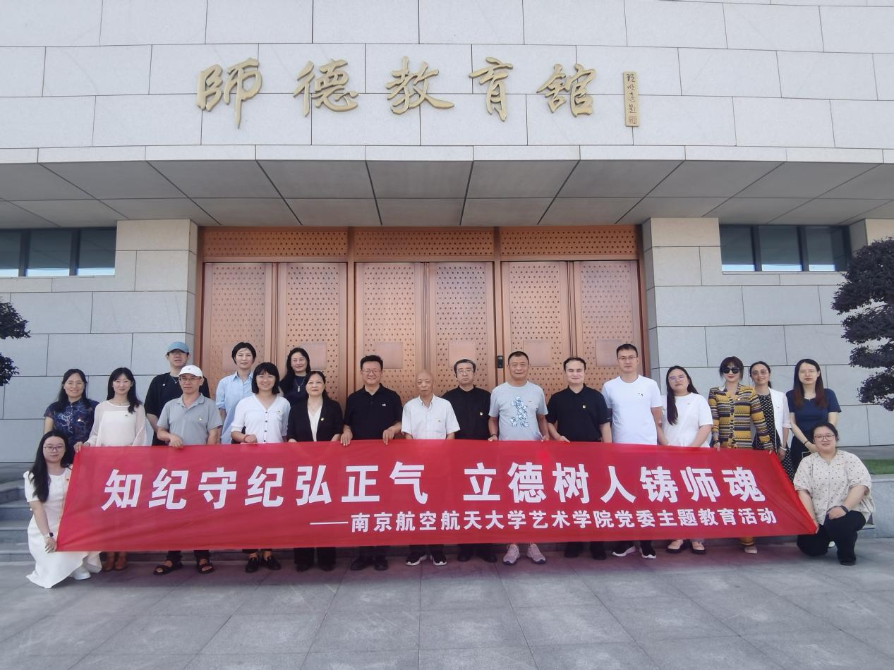 为深入学习党的二十大和习近平总书记关于加强师德师风建设的重要讲话精神,进一步巩固党纪学习教育成果,引导教师牢记“为党育人,为国育才”的初心使命,弘扬教育家精神和高尚师德师风,7月5日,艺术学院党委组织党员教师前往全国师德师风建设基地、江苏省和南京市师德教育基地、爱国主义基地、党史教育基地——南京晓庄学院行知园师德教育馆(陶行知纪念馆),开展了“知纪守纪弘正气,立德树人铸师魂”主题教育活动。艺术学院全体班子成员、党委委员,教工党支部前任和新任支委,机关党支部党员,学生辅导员等参加了此次教育活动。