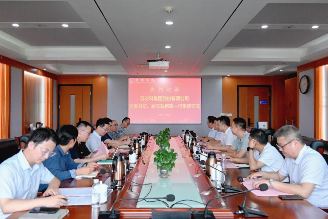7月9日,为响应国家低空经济战略,发展新质生产力,加强“产学研”深度合作,苏交科集团股份有限公司党委书记、副总裁何淼一行六人到民航学院调研交流。民航学院院长张卓然、科研办及各系教师代表参加座谈会。