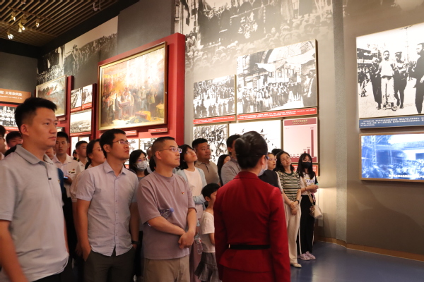 在讲解员的带领下,大家沿着中国人民站起来、富起来、强起来的历史脉络,通过一幅幅经典图片、一件件历史文物、一段段珍贵影像,全方位、全过程、全景式地回顾了中国共产党团结带领中国人民铸就百年辉煌的壮阔历程。