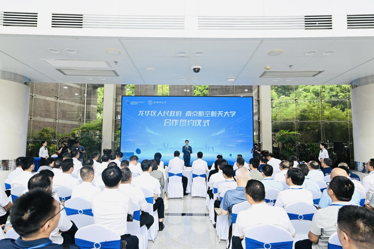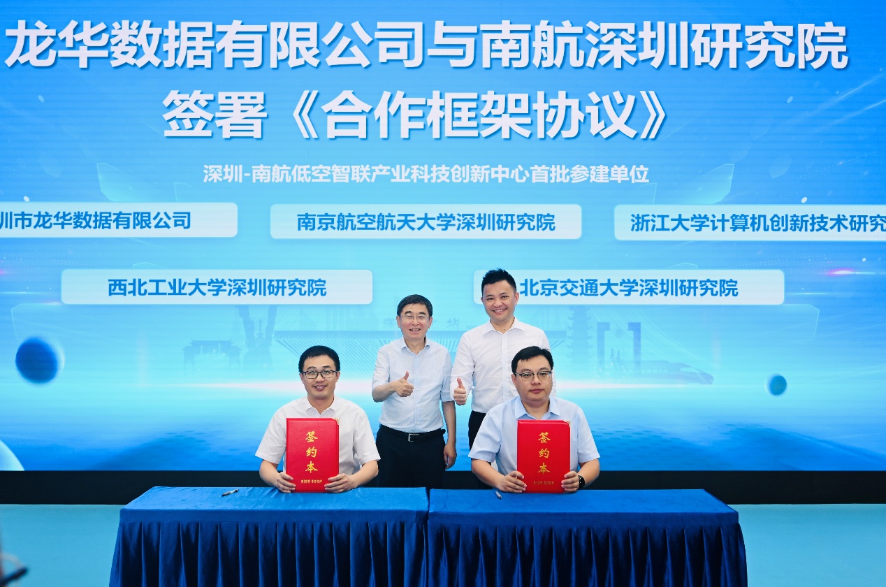 签约仪式上,空中交通管理系统全国重点实验室研究室主任谢华介绍了南航-深圳低空智联产业科技创新中心的建设情况;发布了由深圳市龙华数据有限公司联合南航深圳研究院、多翼创新共同开发的龙华区低空服务管理平台。同时,五家南航校友企业与龙华区人民政府签署《落户意向书》,实现低空产业与科技的深度融合。