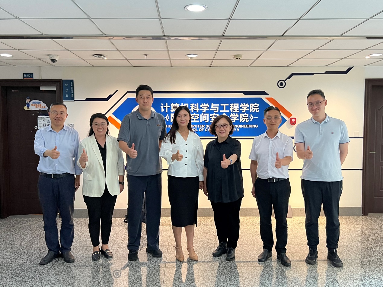 为深入推进新时代党建示范创建和质量创优工作,进一步推动学院治理体系和治理能力现代化建设,学习借鉴高水平大学兄弟学院在党建思政、人才培养、科学研究等方面的宝贵经验,7月11日,计算机科学与技术学院党委书记刘健荣,党委副书记王宁,副院长赵彦超、周宇,基层干部和教师代表一行赴电子科技大学计算机科学与工程学院(网络空间安全学院)开展调研。电子科技大学计算机学院党委书记张庆琳,党委副书记李青,副院长肖鸣宇、鲁力、李洪伟,教师党支部书记、相关工作人员代表参加调研。