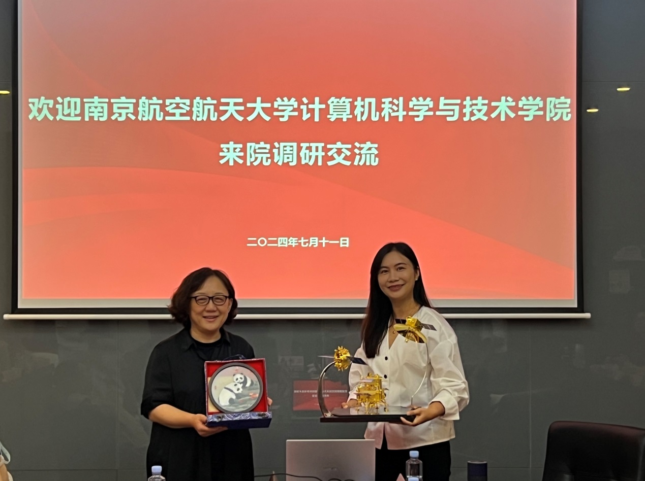 张庆琳对刘健荣一行到访学院表示热烈欢迎,并介绍了电子科技大学计算机科学与工程学院(网络空间安全学院)的悠久历史和院情概况,重点围绕全国党建工作标杆院系、样板支部、“双带头人”教师党支部书记工作室建设情况,进行了经验分享。她表示,电子科大计算机学院党委坚持党管人才原则,牵头改革攻坚,实施“预聘-长聘”教职制度改革,形成优秀人才不断涌现的良好局面,同时将支部建在高层次人才团队上,与服务国家重大需求紧密结合,选好“头雁”、配强班子,提升业务工作战斗力和向心力,在党建工作、人才培养、科学研究等方面不断取得新突破。她希望能以此次交流研讨为契机,进一步加强互动互访、互学互鉴,持续深化院际合作,共同推动双方高质量发展。
