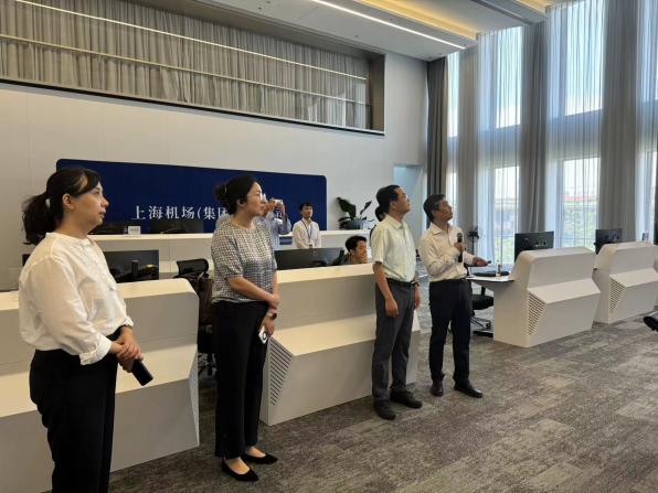 调研期间,张卓然一行参观了上海机场(集团)有限公司指挥中心,并前往虹桥机场看望实习的在校生,与行业导师共同听取了学生的实习汇报。