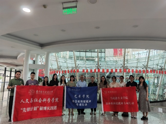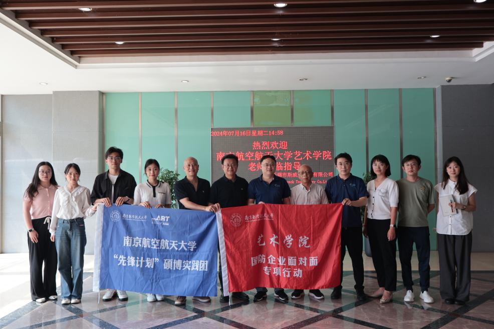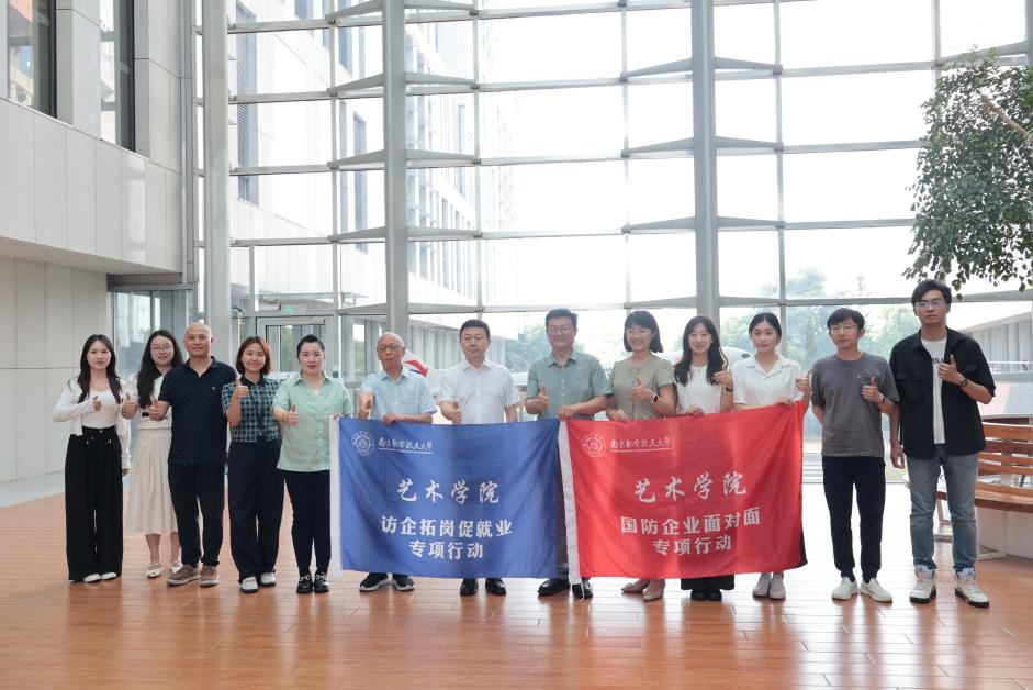 为贯彻落实“访企拓岗促就业”专项行动工作部署和要求,进一步开拓国防重点领域就业市场,深化校企合作,促进毕业生高质量就业,近日,艺术学院师生一行赴江苏、上海等地开展访企拓岗促就业专项行动暨“国防企业面对面”活动。艺术学院院长板俊荣、副院长马道全、党委副书记卢一亭、美术系教师汪浩文、新闻传播学系教师杨学永、高娜,辅导员章诗蕾及研究生代表一同参加走访调研。