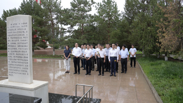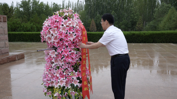 为缅怀先烈,调研团前往马兰烈士陵园为全体马兰英烈敬献鲜花,并在著名核科学家、我校陈达院士墓前深切悼念,回顾陈达院士在基地和南航为我国教育科技人才事业无私奉献的一生,表达追思之情。