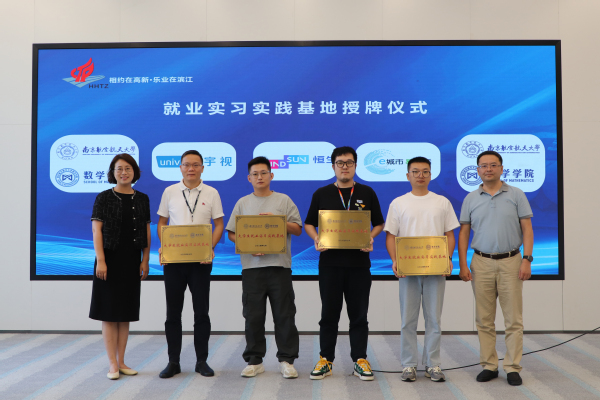 在杭州高新区(滨江)校地企座谈交流会上,涂相旭详细介绍了杭州市滨江区的发展现状、企业需求和人才政策等情况。各单位负责人分别从行业背景、人才需求和招聘政策等方面介绍了公司概况。与会人员就加强校企地联合共建达成合作意向,许静、王春武向4家代表企业授予“大学生实习实践基地”铜牌,并签署校企共建就业实习实践基地协议。