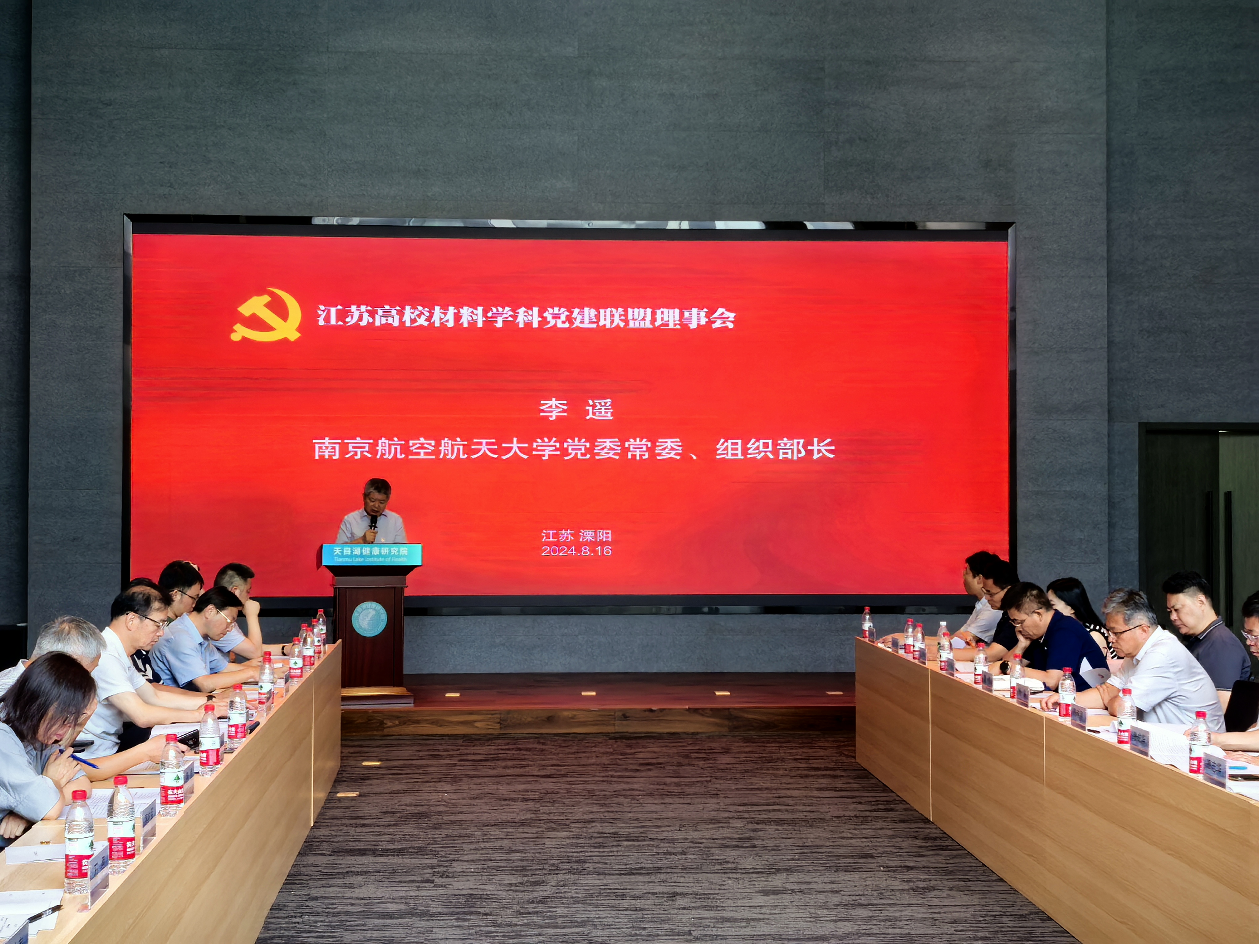 8月16日,江苏高校材料科学党建联盟理事会暨党建引领产业创新发展论坛在溧阳召开,联盟由南京航空航天大学、南京工业大学等十二家在宁高校的材料学院党委共同发起,南航材料学院党委成为江苏高校材料学科党建联盟首批常务理事单位。我校党委常委、组织部部长李遥出席会议并致辞。
