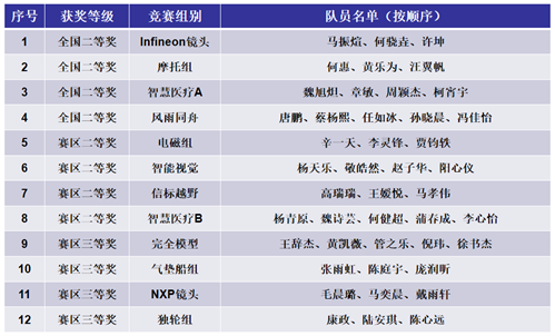 在教务处、校团委的大力支持下,自动化学院精心组织,积极备赛,举办校内选拔赛对参赛学生进行培训和筛选,共遴选出13支队伍参赛。在华东赛区赛中获得省级一等奖4项、省级二等奖4项、省级三等奖4项,共计4支队伍进入全国总决赛,并最终斩获全国总决赛二等奖4项。