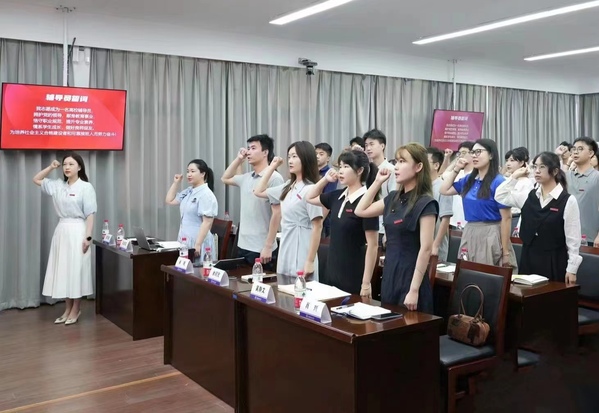 开班仪式上,学生处处长王静为新任辅导员代表佩戴校徽。全体新任辅导员戴上校徽,意味着拥有了南航人的光荣身份,也意味着将一起承担南航“为党育英才、为国铸重器”的使命担当。辅导员代表张钦尧带领全体新任辅导员进行庄严宣誓,一字一句,神圣而豪迈,他们将牢记誓言,铭记嘱托,勤奋务实,开拓创新,为学校教育事业发展和学生成长成才贡献智慧与力量。