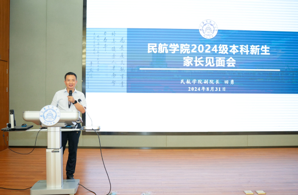 田勇代表学院对2024级本科新生和家长的到来表示欢迎,他围绕历史沿革、学科建设、师资队伍、人才培养等方面介绍了学院的基本情况,并对大学学习特点进行分析。他表示,民航学院办学底蕴深厚,学科专业实力雄厚、人才培养成效显著、对行业发展贡献突出,有基础、有条件、有能力、有信心把同学们培养成民航领域的优秀人才。