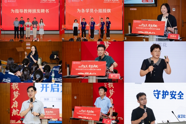 开营仪式上,学生处处长王静为各营员小组授旗,她期望营员们珍惜来之不易的培训机会,把握成长机遇;树立学以致用的学习理念,服务师生所需;坚定航空报国的理想信念,勇担时代使命。希望大家通过新生骨干训练营更快地适应大学,努力成长为2024级新生中的先行者和佼佼者,始终走在前列,做表率、做示范,在赓续红色基因中勇立时代潮头。天目湖校区党工委副书记、学生处副处长贡海俊为训练营指导教师颁发聘书。第一组营员代表,经济与管理学院新生张芷毓同学发言,她号召同学们荣誉只属于过去,奋斗才能成就未来。要珍惜韶华、勇敢追梦,践行好校风校训,在今后的学习生活中,肩负责任与担当,为南航建设添砖加瓦!第三组指导教师,计算机科学与技术学院/软件学院、人工智能学院辅导员王叶飞发言,他表示训练营对于辅导员而言是一次“一同学习”的宝贵机会,希望各位营员能够提升综合素质。同时辅导员要加强沟通,了解新生需求和所思所想,从而为同学们提供更加贴心、更加精准、更具温度的指导与帮助。