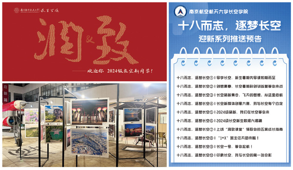 为确保迎新工作平稳有序高效开展,长空学院坚持早启动、早谋划、早落实,全员全程全方位深度参与迎新工作。迎新前夕,学院推出十期系列化专题推送,选聘优秀高年级学生担任新生班导,打造以全体新生姓名构筑的“润&致”主题文化喷,策划“金陵四十八景”主题摄影展,助力新生从零开始走进南京、认知南航、感知长空。