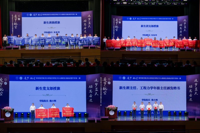 9月11日,航空学院于明故宫校区大学生活动中心举办“逐梦·航空”2024级新生见面会暨开学第一课。学院党委书记卜建,院长魏小辉,党委副书记杨杰,副院长陆洋、钱晓辉,2024级工程力学专业年级主任高存法,学院各系所负责人、新生班主任、教务员、辅导员、军训教官,及789名本硕博新生参加本次活动。活动由学院团委书记代澔丛主持。